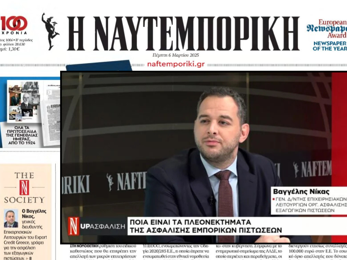 O Βαγγέλης Νίκας, Γενικός Διευθυντής Επιχειρησιακών Λειτουργιών στην Export Credit Greece αρθρογραφεί στην Ναυτεμπορική για την «Ασφάλιση εξαγωγικών πιστώσεων- Μοχλός Εξωστρέφειας.
