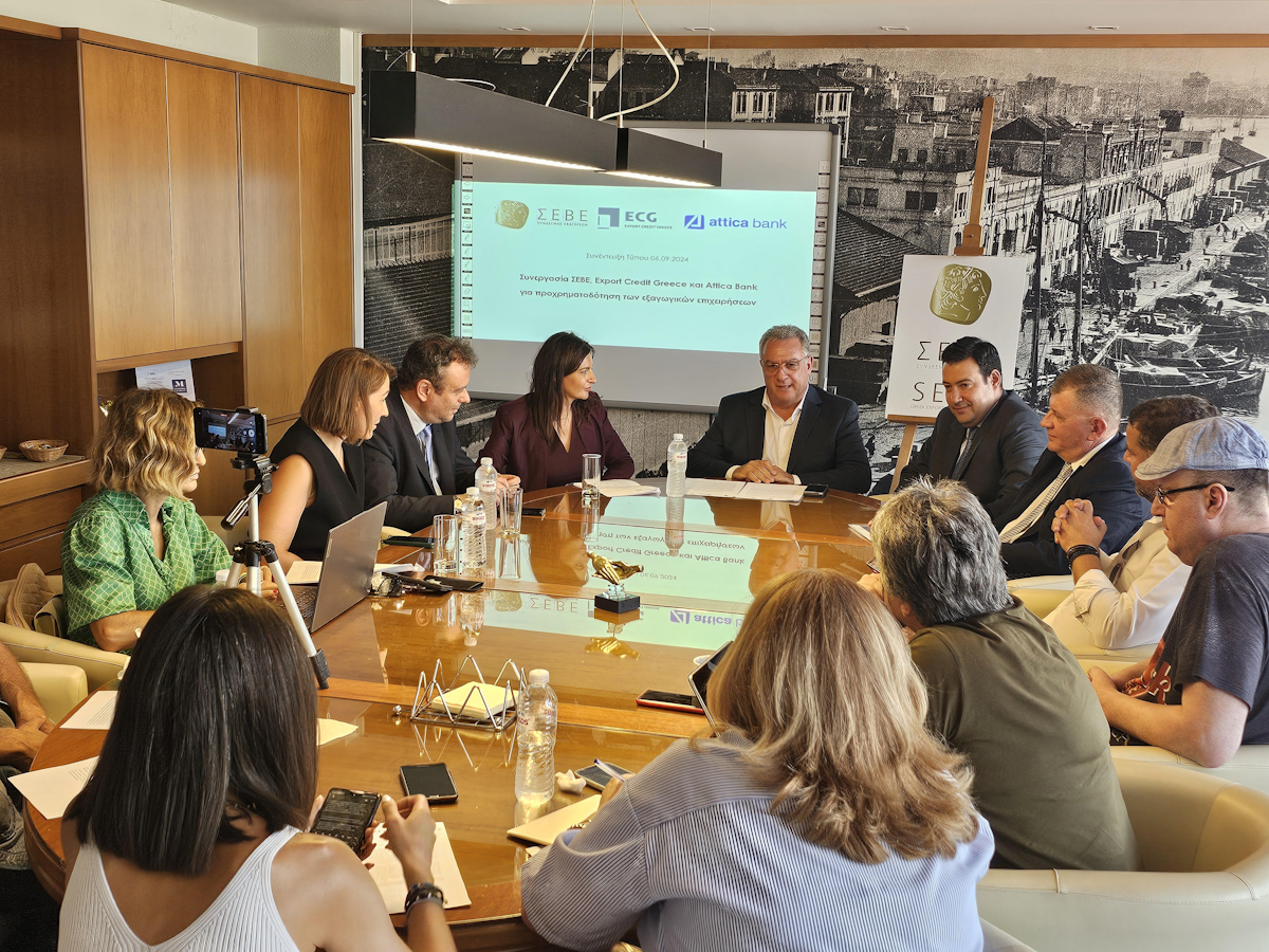 Τη συνεργασία του ΣΕΒΕ-Συνδέσμου Εξαγωγέων, της Export Credit Greece και της Attica Bank για την υποστήριξη των εξαγωγικών επιχειρήσεων της χώρας μέσα από εξειδικευμένα χρηματοδοτικά προϊόντα ανακοίνωσαν σήμερα στη Θεσσαλονίκη οι διοικήσεις των τριών φορέων, τονίζοντας τη σημασία προώθησης των εξαγωγών για την επιχειρηματική ανάπτυξη και την εθνική οικονομία.